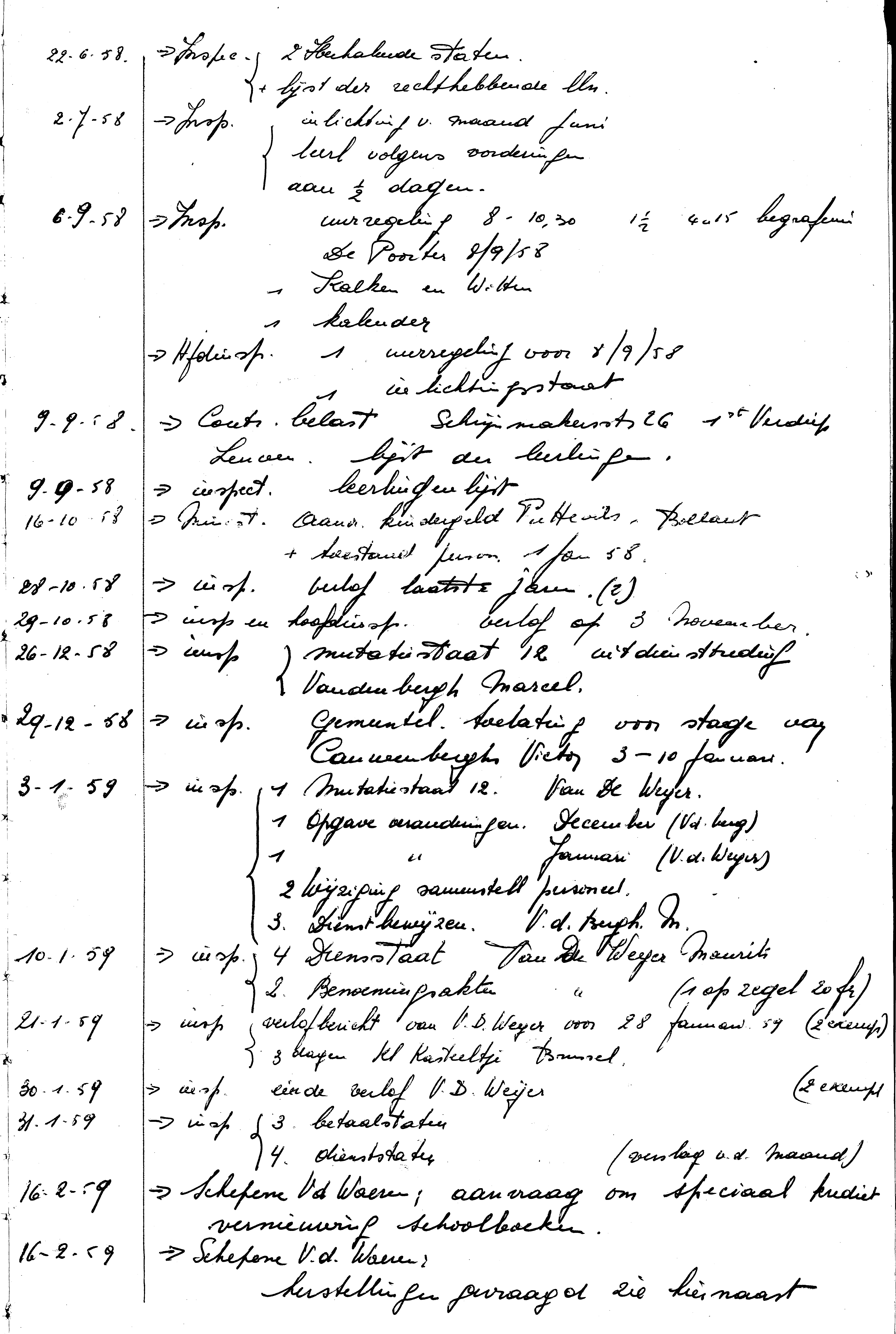 - BeschrijvingRegister briefwisseling: vanaf 22/06/1958 tot en met 16/02/1959