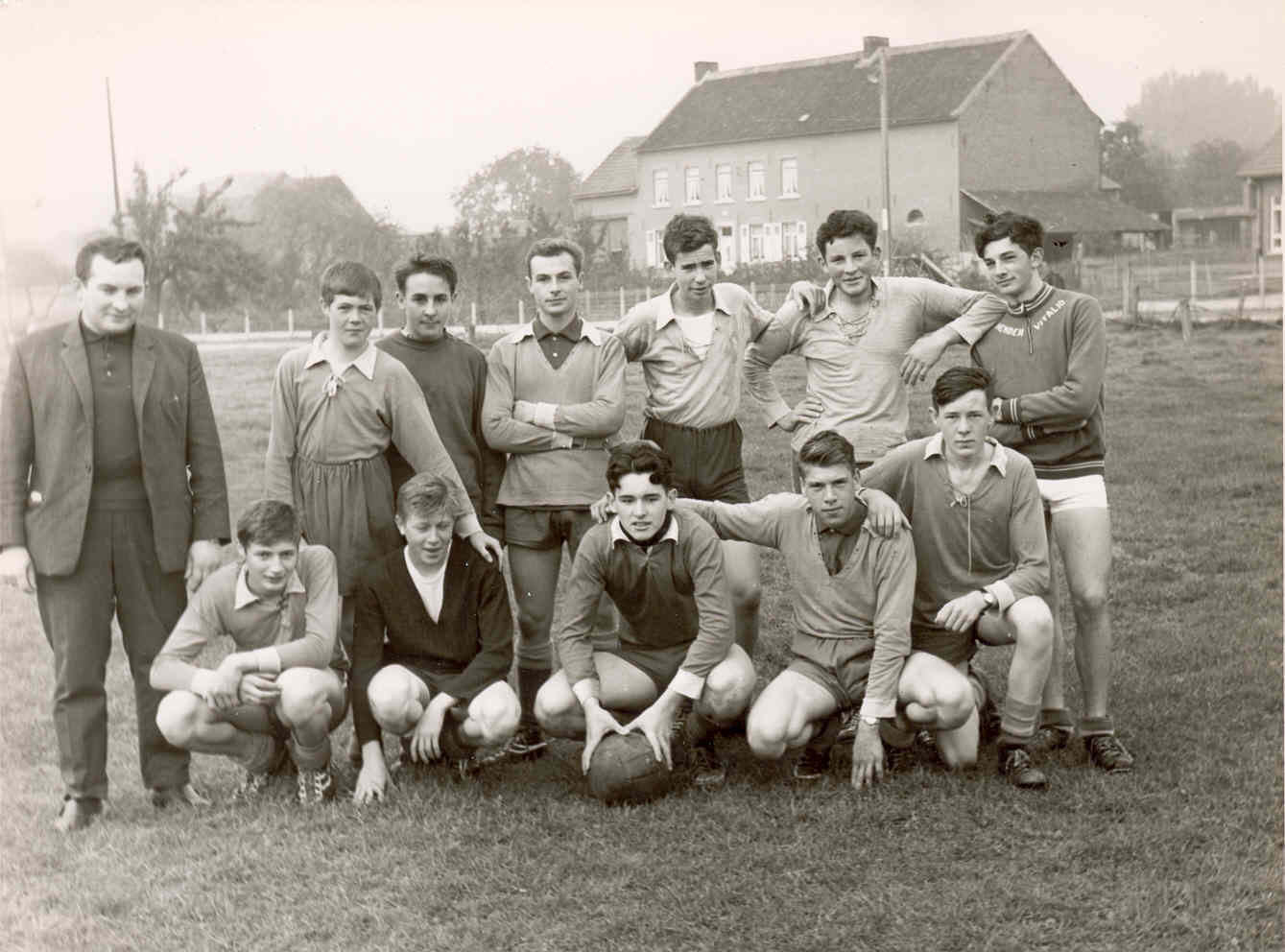 - Beschrijvinggroepsfoto voetbalclub "Sporting Meensel" met oa: Schotsmans Romain, Janssens Richard, Jonckers Jos, Beddegenoots Louis Lambrechts Jozef, Peeters André, Bovin Pierre, Vuchelen Dolf, Stas Jos, Lambrechts Jean, Craeninckx August