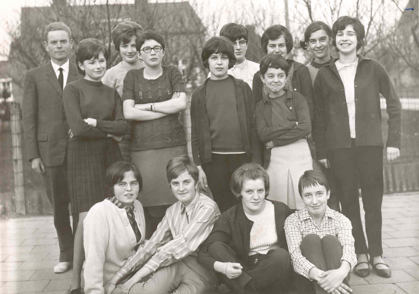 - BeschrijvingDe KLJ meisjes van Meensel behaalden een schitterende overwinning op de gewestelijke cultuurdag te Tienen, waardoor zij op 30/04 en 01/05/1967 te Gent naar de kampioenstitel zullen dingen. Wij zien hier deze moedige meisjes samen met hun trainer