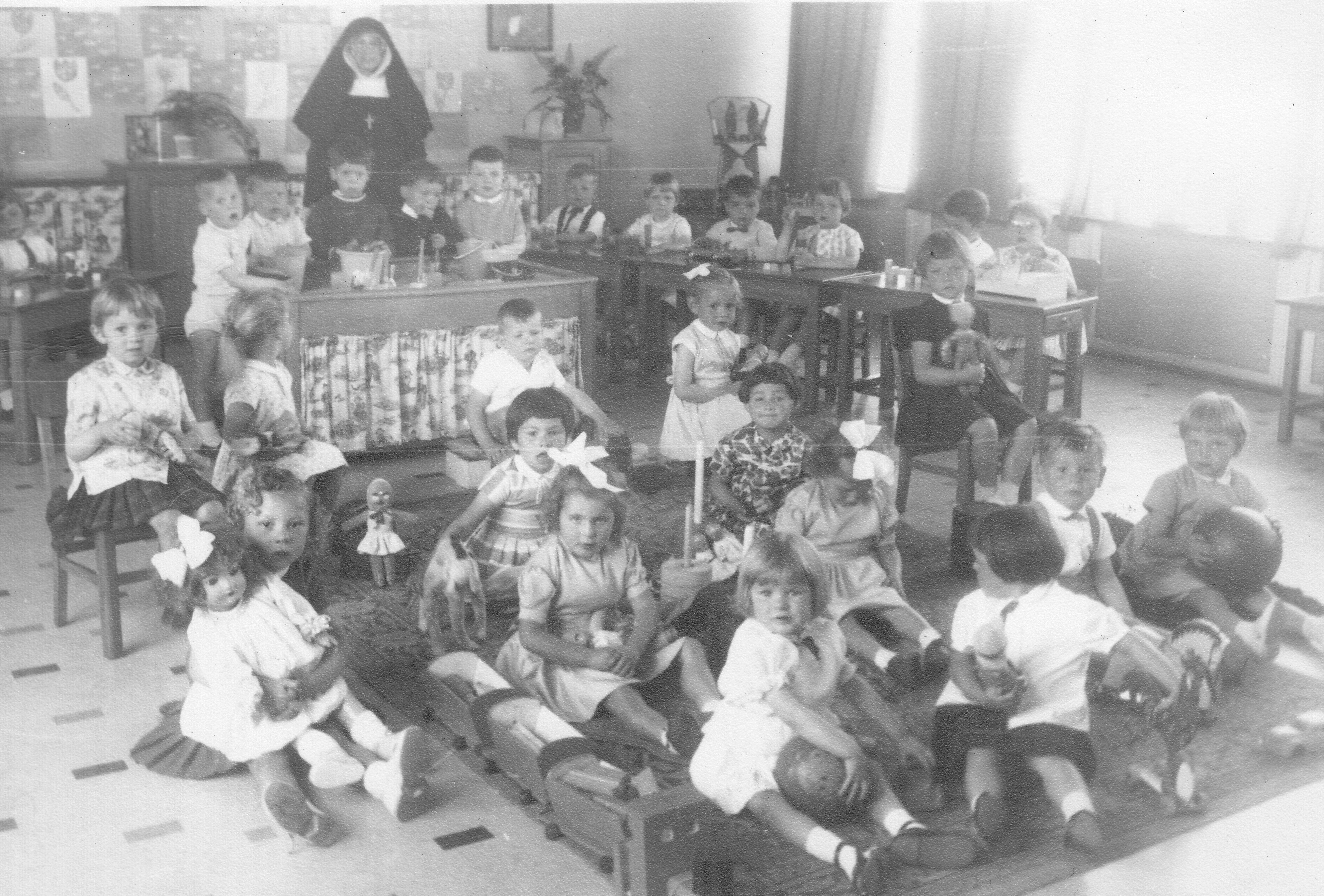 - Beschrijvingvooraan links van voor naar achter: Liliane Symons, Gerda Van de Gaer,?, 2de rij van links van voor naar achter: ?, Lutgarde Vos, Sonja Liboton,André van de Gaer, 3de rij van links van voor naar achter: Bernadette Nolmans, Godelieve Vos, Marleen Symons, Bernadette Foulon, voor aan ?,?,?, achteraan aan tafel links: uiterst links Walter Bosmans, rechtse tafels: 5de van voor naar achter Christel Nijs, 1e vooraan Bovin