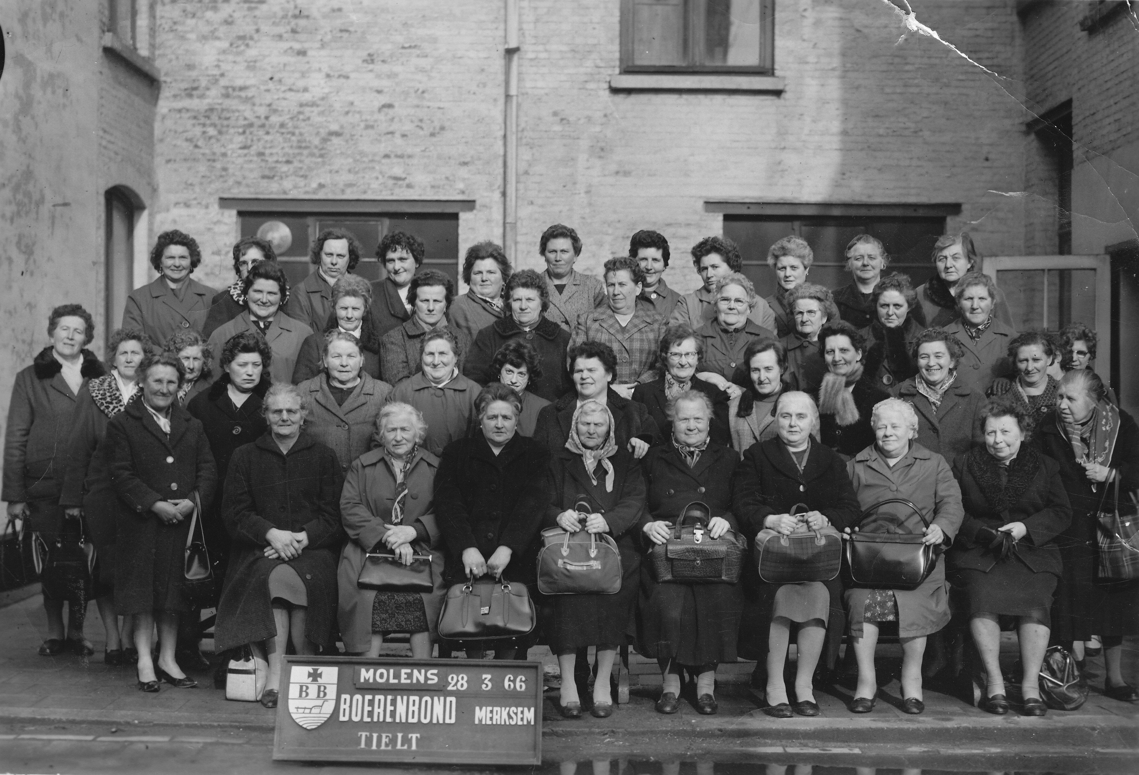 - Beschrijving1ste rij van links naar rechts: Melanie Boxstens, Clementine Van Nuffelen,?,Maria Bollaerts,?, Minneke echtgenoot van F. Alaerts, Sylvie Van Nuffelen, Anna van Boni van Del, ?; 2de rij van links naar rechts: Celesta van Treeske Valk, Jet Bickx, Emma Bickx, ?, Julia Van Kerkckhoven, Helena Bickx, Maria Boxstens, Anna Vanderweyden, Lucienne Storms, Maria Peeters, Emma Willems, ?; 3de rij van links naar rechts: Clotilde Beckx, Maria Beckx, Maria Van Dael, Jeanne Marcoen, Julia Vanderhaegen, Anna Aerts, ?,Maria Van Esch, Dula Rasschaert,Marceline Van Winkel, Leontine Timmermans, Louisa Jochmans; 4de rij van links naar rechts: Maria Rasschaert, Malvine Rasschaert, Irma De Vos, Maria Vranken,?, Bertha Vanderhaegen, Paula Willems, Margriet Coekaerts, Maria Van de Gaer, Emma Van De Gaer,Gusta Schroeven