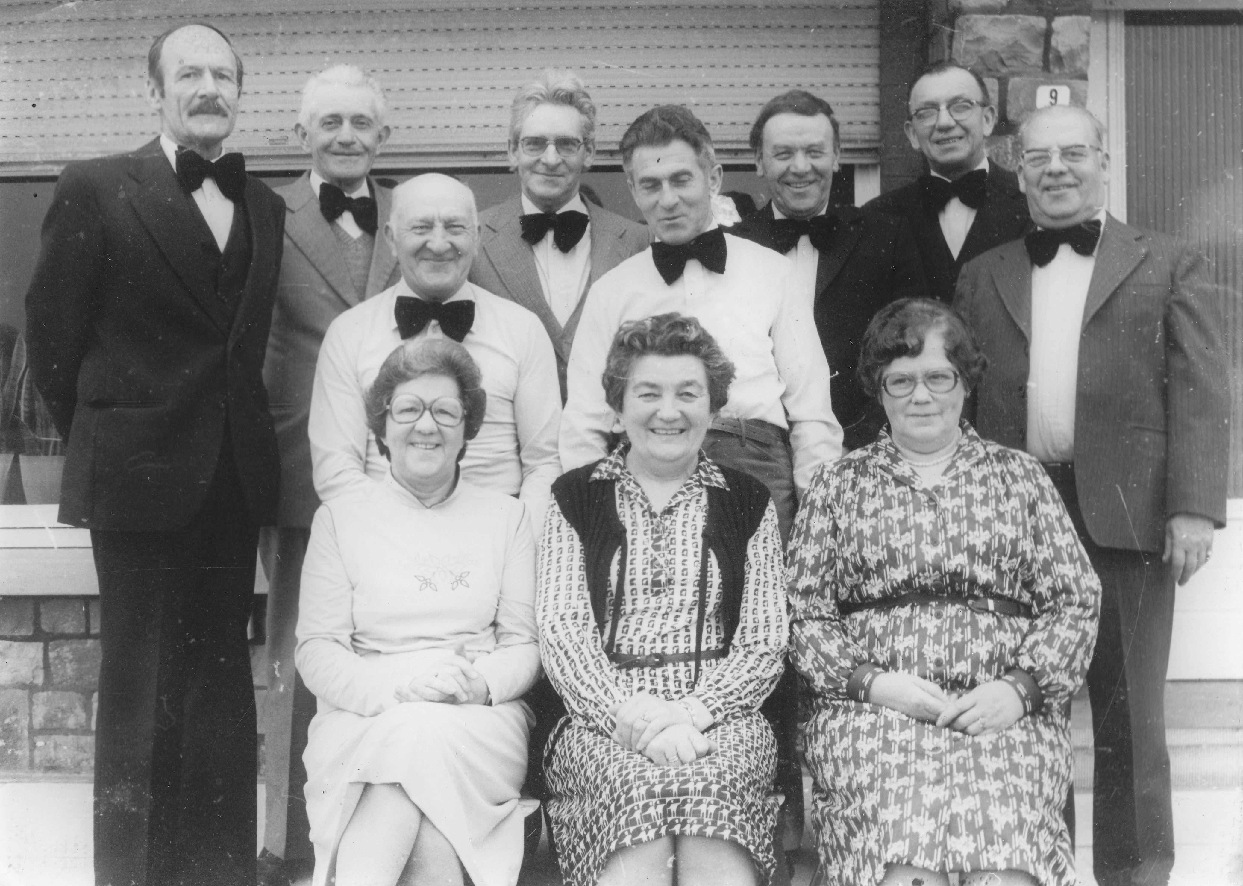 - Beschrijving1ste rij van links naar rechts: Louisa De Mol-Mars, Maria Peeters, Bertha Huybrechts; 2de rij van links naar rechts:Frans Alaerts, André Van Horenbeek,Triphon De Cock; 3de rij van links naar rechts: (Piet) Willems, Remi Alaerts, Remi Pelsmaekers, Marcel Verhaegen