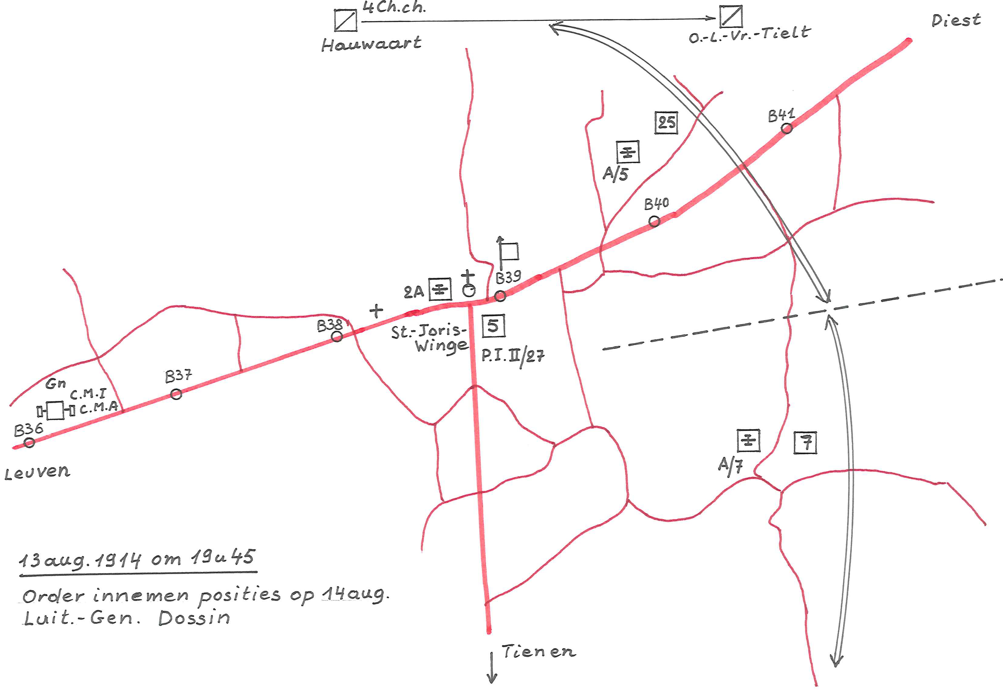 - BeschrijvingIn te nemen posities op 14 augustus volgens onder Luit-Generaal Dossin om 19u45