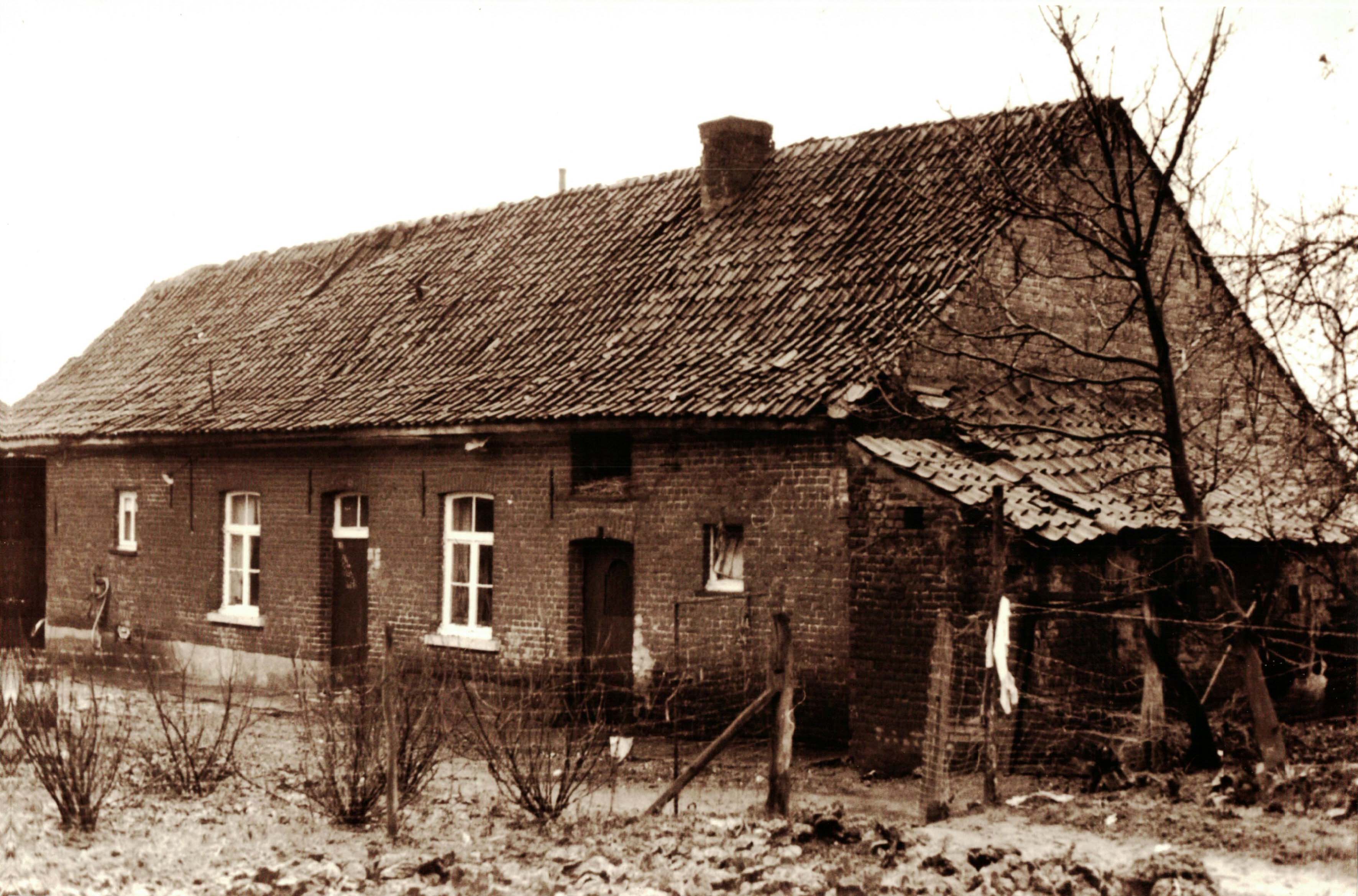 - BeschrijvingVoormalige hoeve (Verhaegen), nu vervangen door een nieuwbouw. De laatste bewoners : Felix Leopold Verhaegen (1878-1954) en Maria Paulina Bollaerts (1887-1967). Dit was toen het huis van Leopold zijn eerste vrouw Maria Emma Victoria De Ruyter (1881-1909) die het had geërfd van haar ouders : Joannes De Ruyter (1839-1899) en Barbara Julia Clinckx (1841-1919). Linkse venstertje: slaapgedeelte; voordeur en vensters links en rechts : woonvertrek; rechtse deur: koestal; aanbouw: varkenshok.