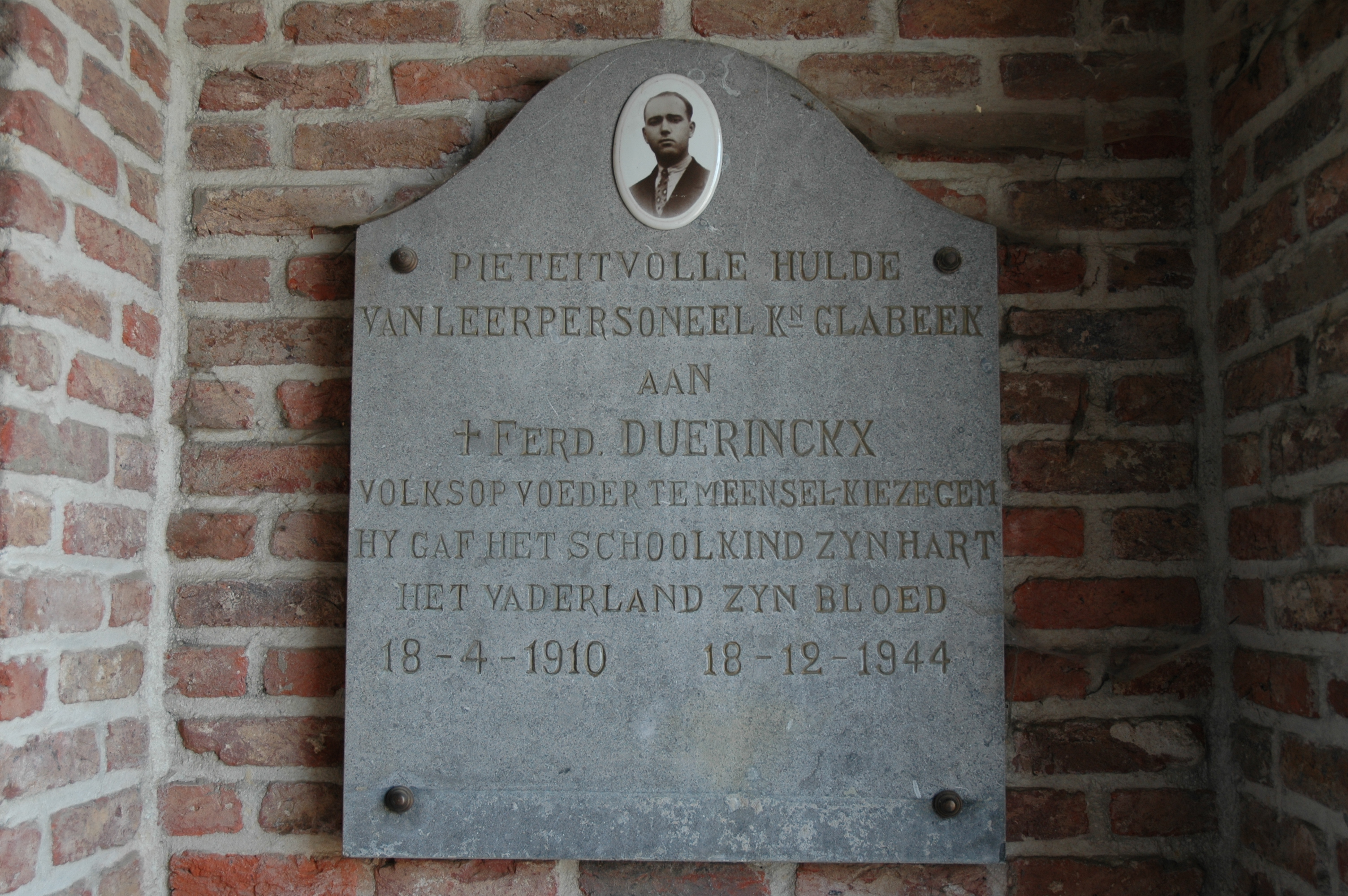 Gedenksteen aan onderwijzer F. Duerinckx