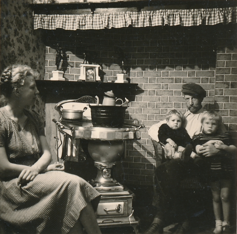 - BeschrijvingSwinnen Jan Remi samen met zijn dochter Maria en twee van zijn kleinkinderen Nicole en Christiane (kinderen van Lena Swinnen en Alfred Lemmens)