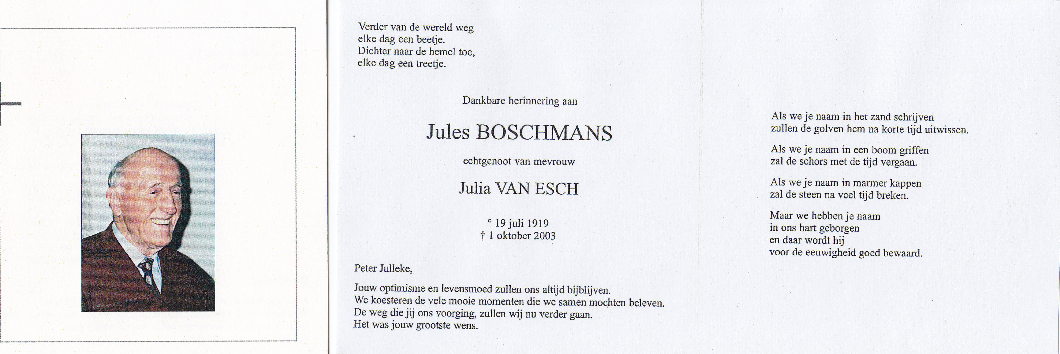 Doodsprentje Jules Boschmans 2003