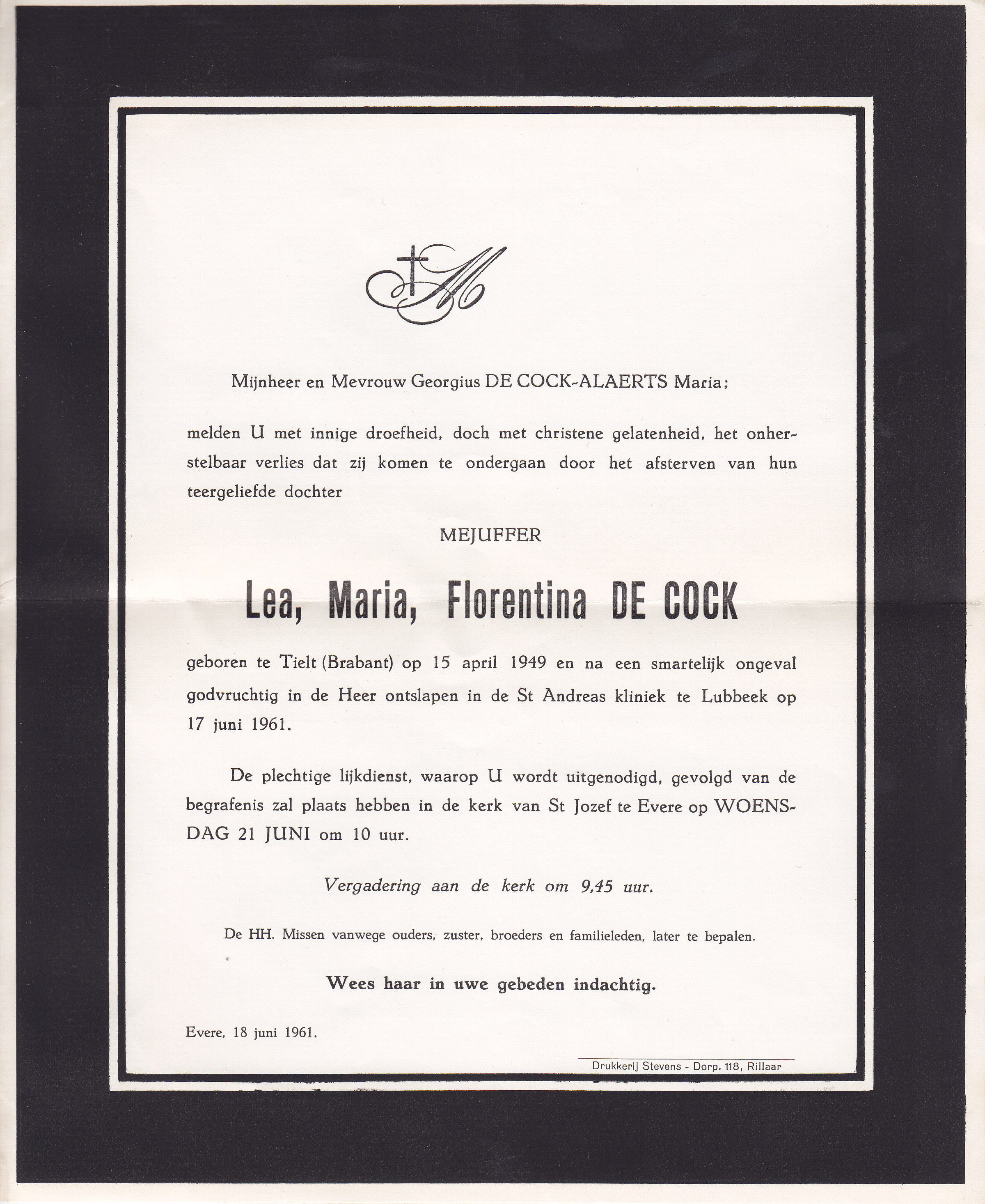 Doodsbrief Lea, Maria, Florentina De Cock 1961