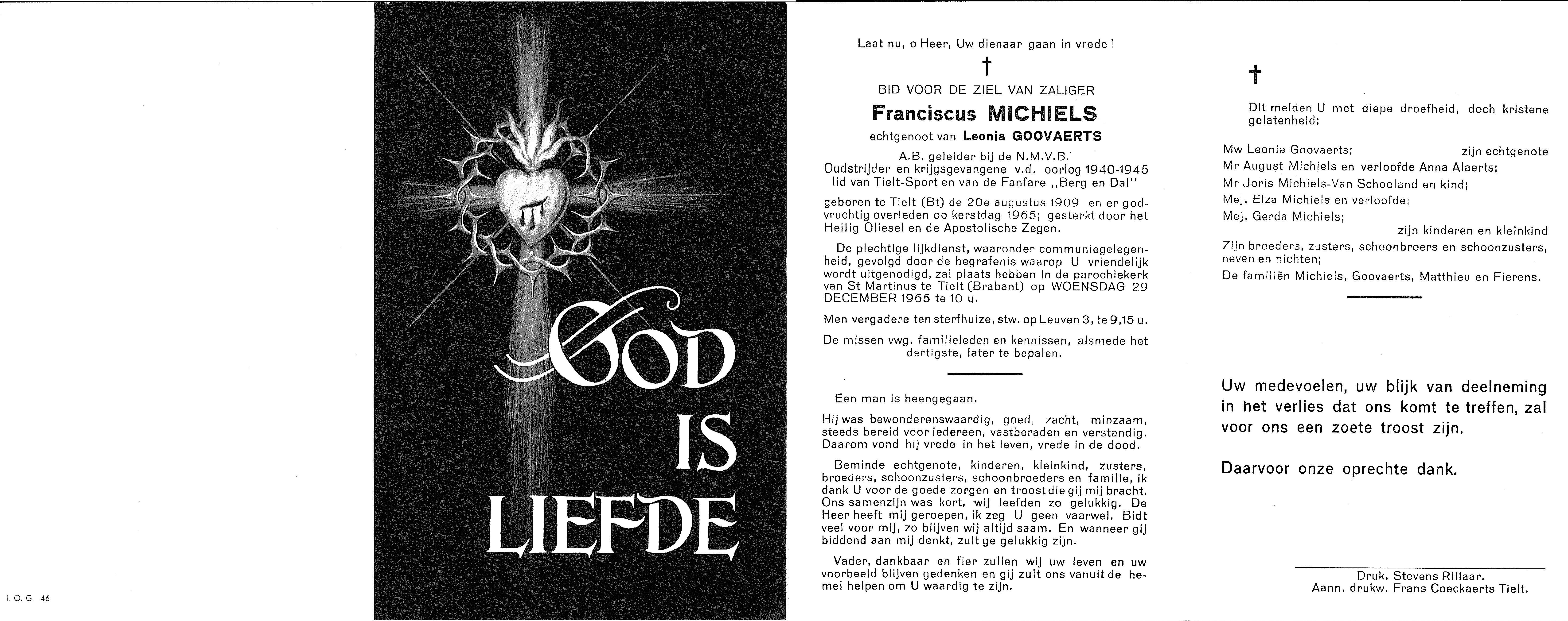 Doodsprentje Franciscus Michiels 1965