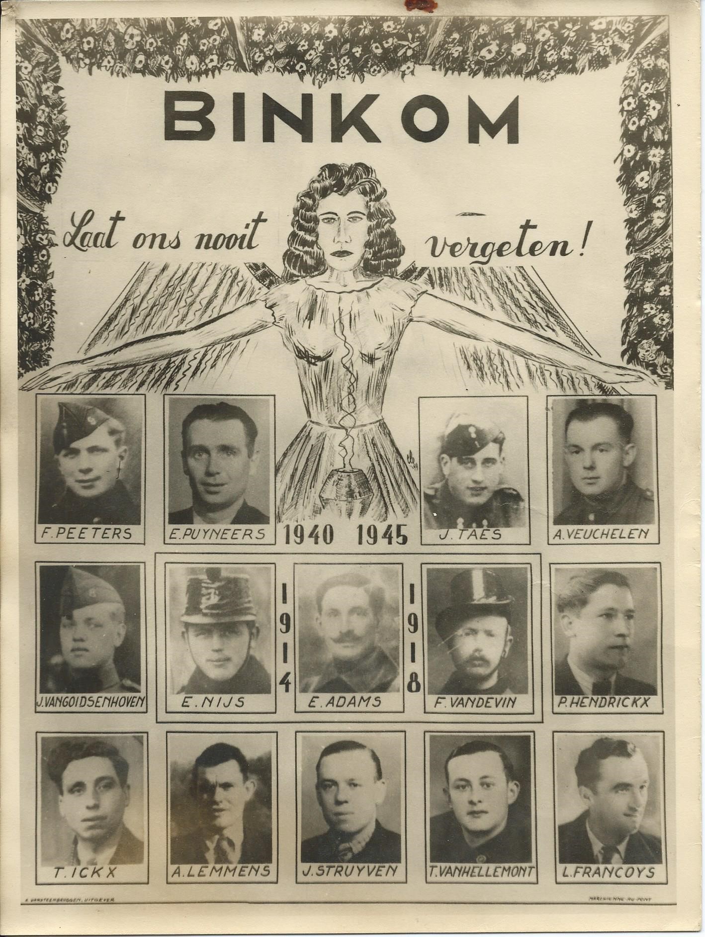 - BeschrijvingDoodsprentje van Theophiel Vanhellemont, ° OLV Tielt, 23/03/1917, aangehouden en weggevoerd op 24/02/1944, in Duitsland aan mishandelingen en ontberingen overleden op 13/04/1945. Zoon van August Vanhellemont en Margareta Duerinckx, de familie verhuisde naar Binkom waar Theophiel begraven werd.