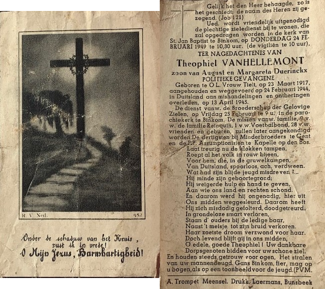 Doodsprentje Theophiel Vanhellemont 1945