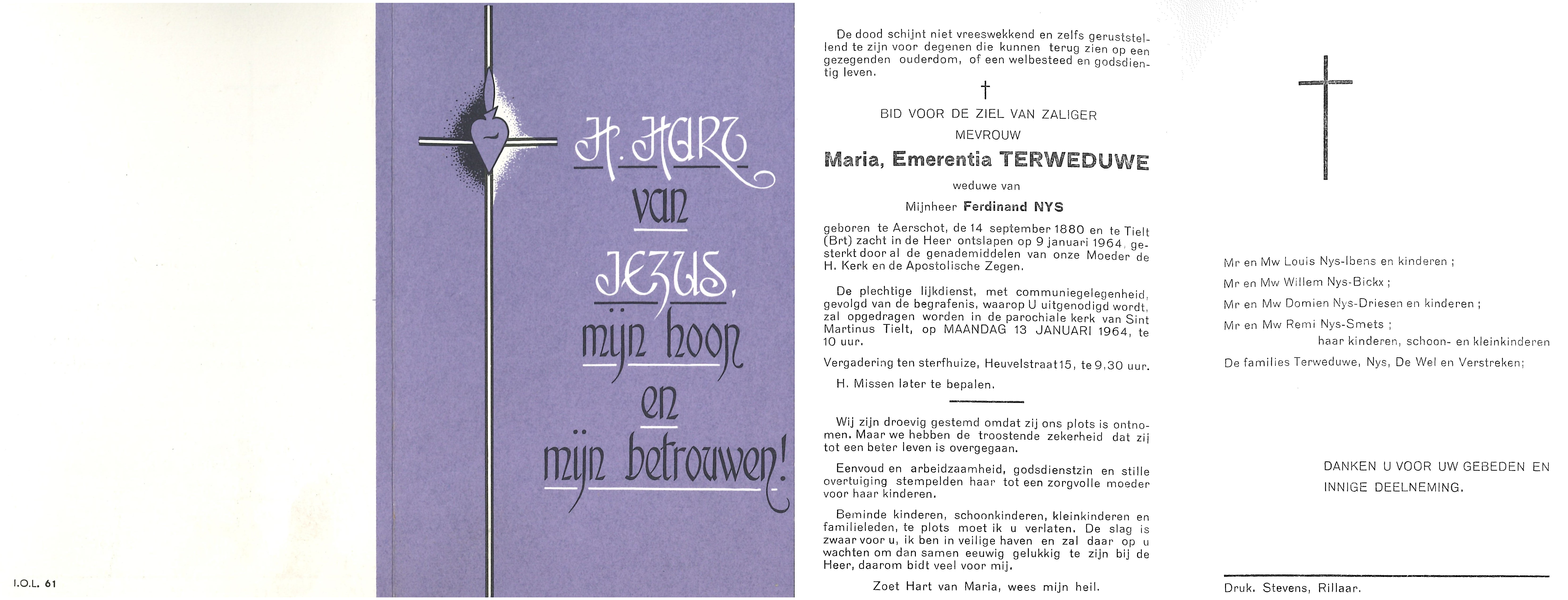 Doodsprentje Maria Terweduwel 1964