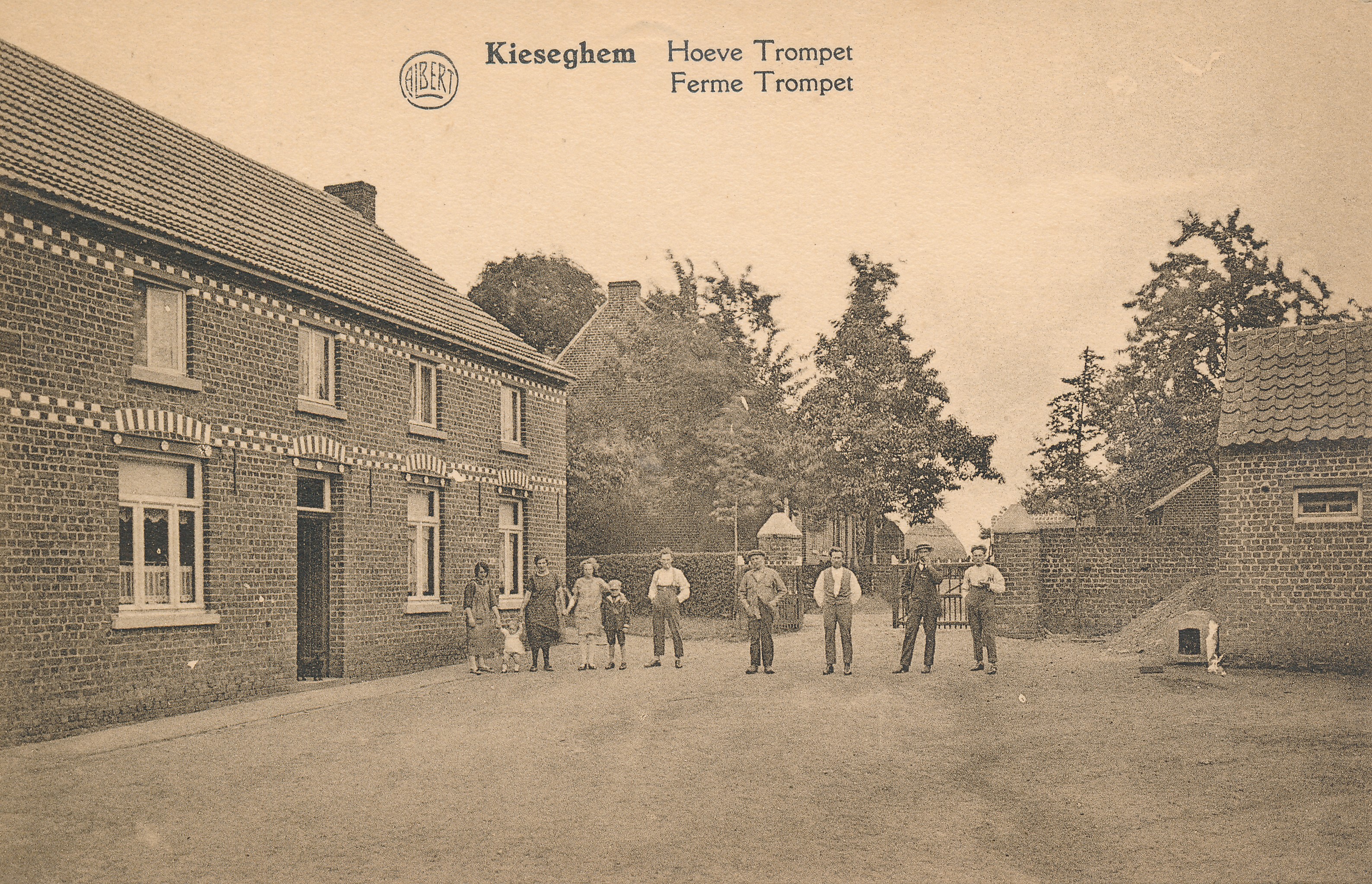 - BeschrijvingPrentkaart Hoeve Trompet Kiezegem