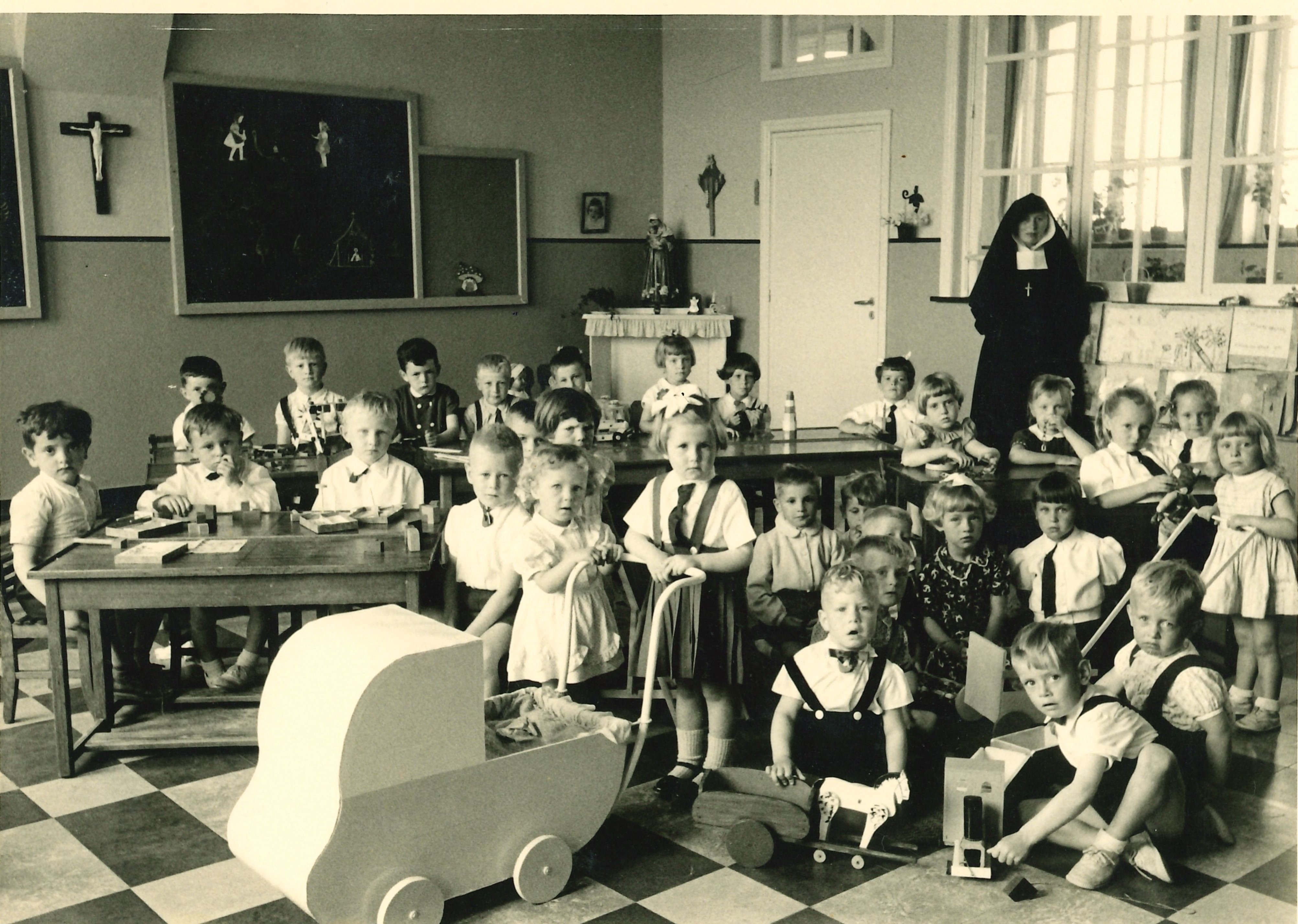 - BeschrijvingKlasfoto Salve Mater wijkschool 1955-56