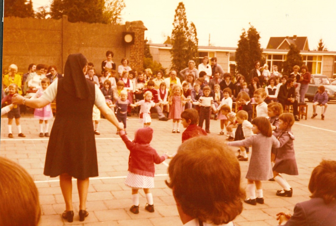 - BeschrijvingDe kleuters voeren een dansje uit tijdens het kleuterfeest.