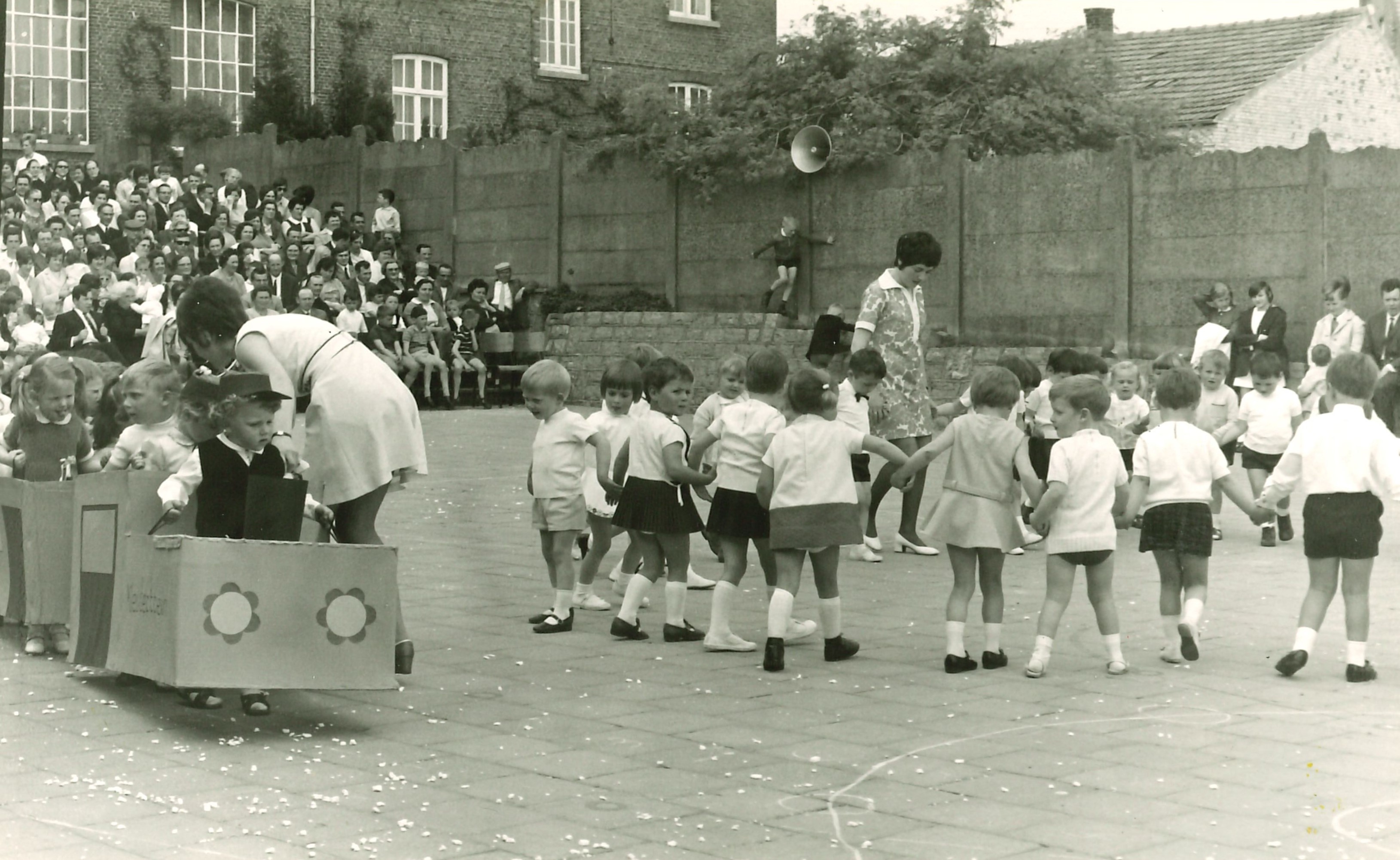 - Beschrijvingschoolfeest 1970 25 jarig bestaan Salve Mater kleuters met juf Lea en juf Anita