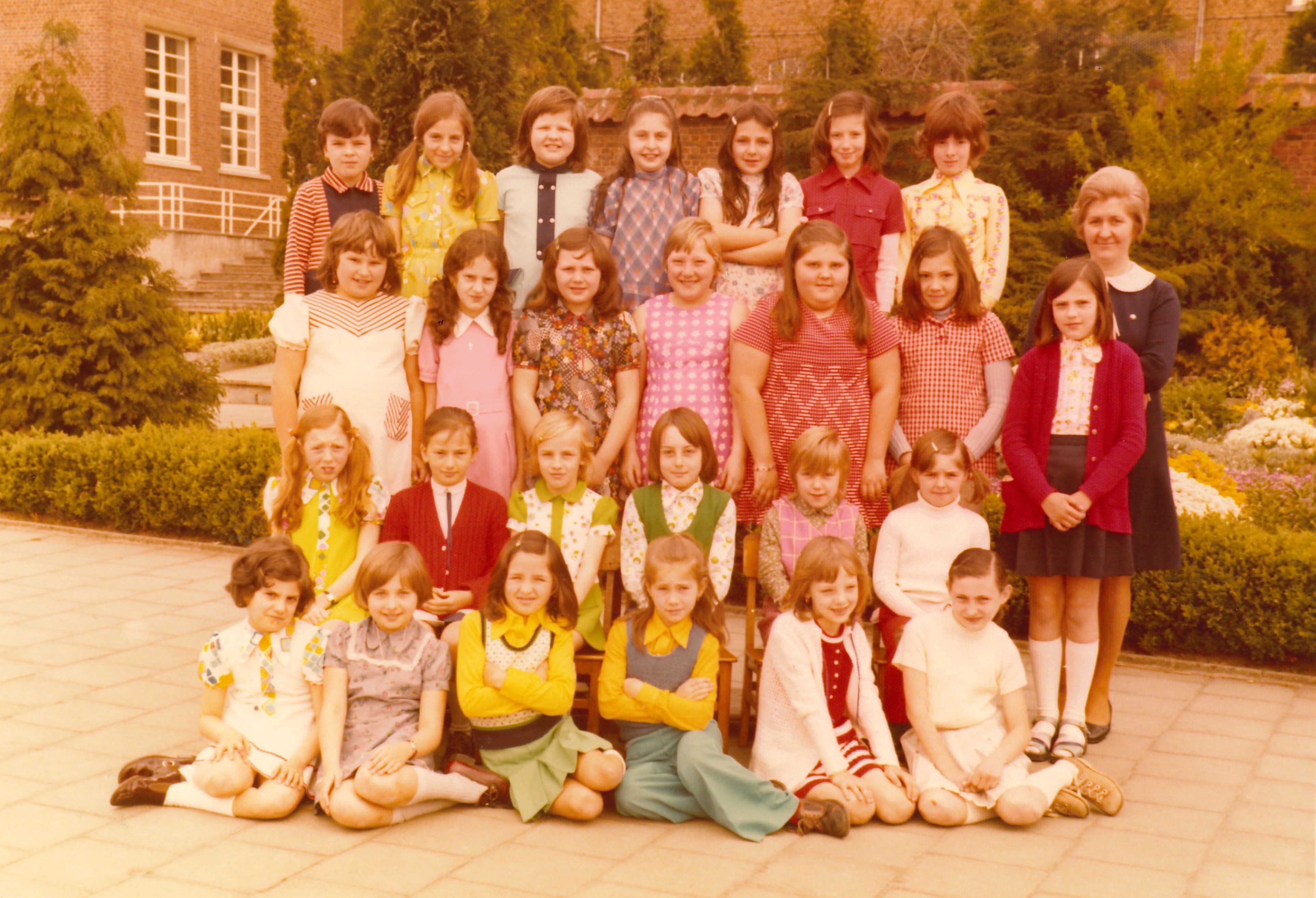 - Beschrijving1974 4e leerjaar Berg onderaan vlnr: Marijke Osaer, Marleen Bollaerts, Ingrid Wijns,Lily Coekaerts, Renilde Vandael, Christine Schouters 2e rij: Rita Loozen, Fernanda Boschmans, Marleen Vaneven, Maria Jordens, Fanny Vanschoelant, Myriam Verheyden 3e rij: Chantal Lissens, Linda Reniers, Carine Coekaerts, Jenny Verhaegen, Sonja Willems, Ingrid Timmermans, Ingrid Trevels, juf Gusta 4e rij: Agnes Coekaerts, x,Christine Smets, Rosita Verhaegen, x, Annemie Vandendries, Iris Bavin