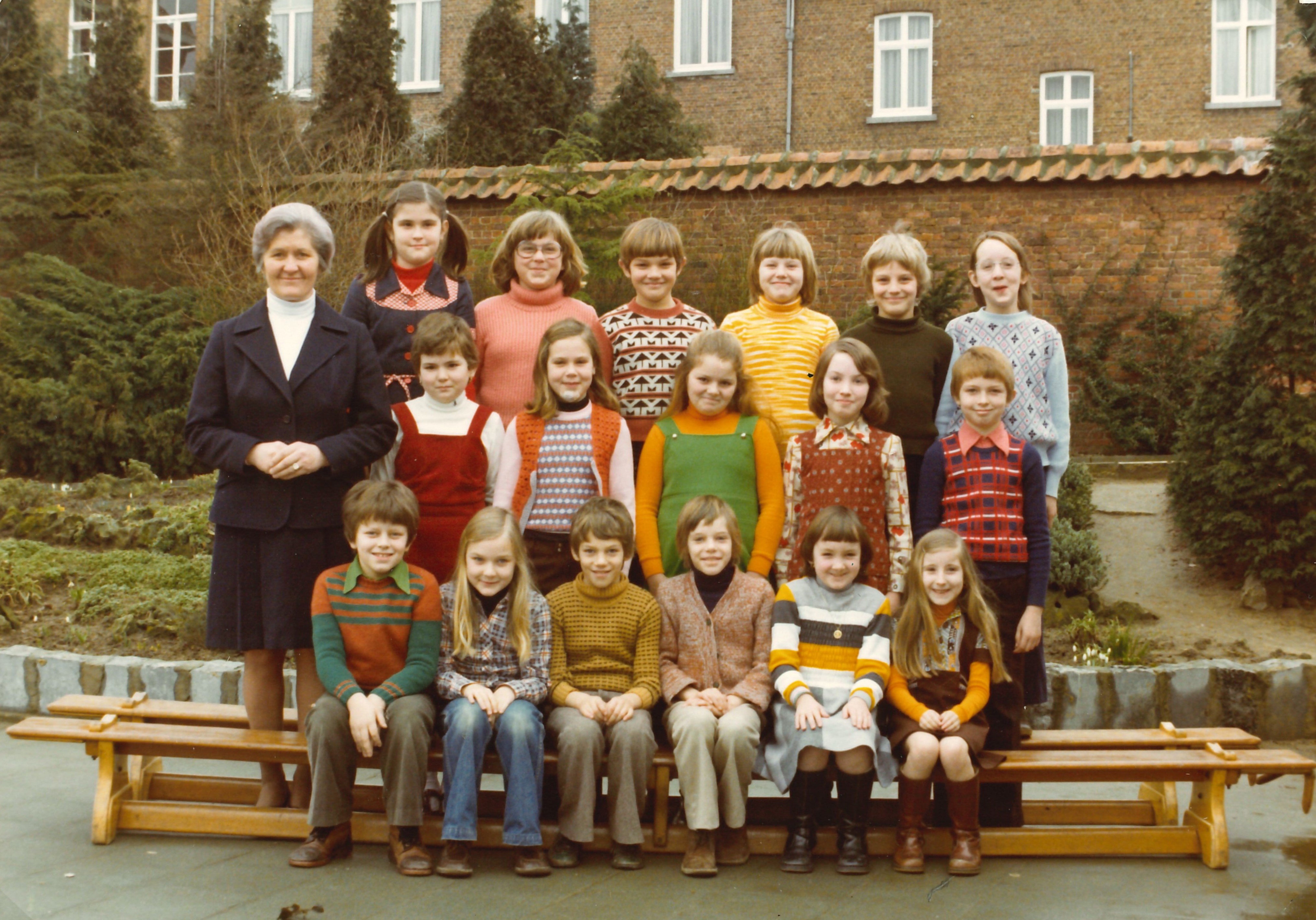 - BeschrijvingBerg 4e leerjaar 1977 met juf Gusta