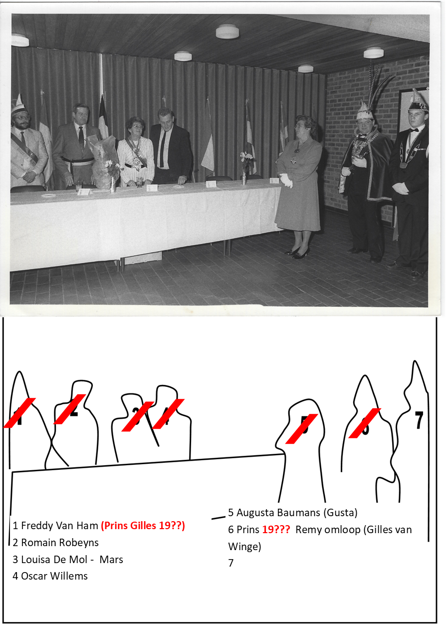 - BeschrijvingFreddy Van Ham, Romain Robeyns, Louisa De Mol-Mars, Oscar Willems, Gusta Baumans, Remy Omloop - Gilles van Winge