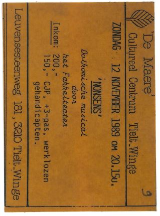 - BeschrijvingIn 1989 vond er een voorstelling plaats met de titel 'Nonsens' in GC De Maere.