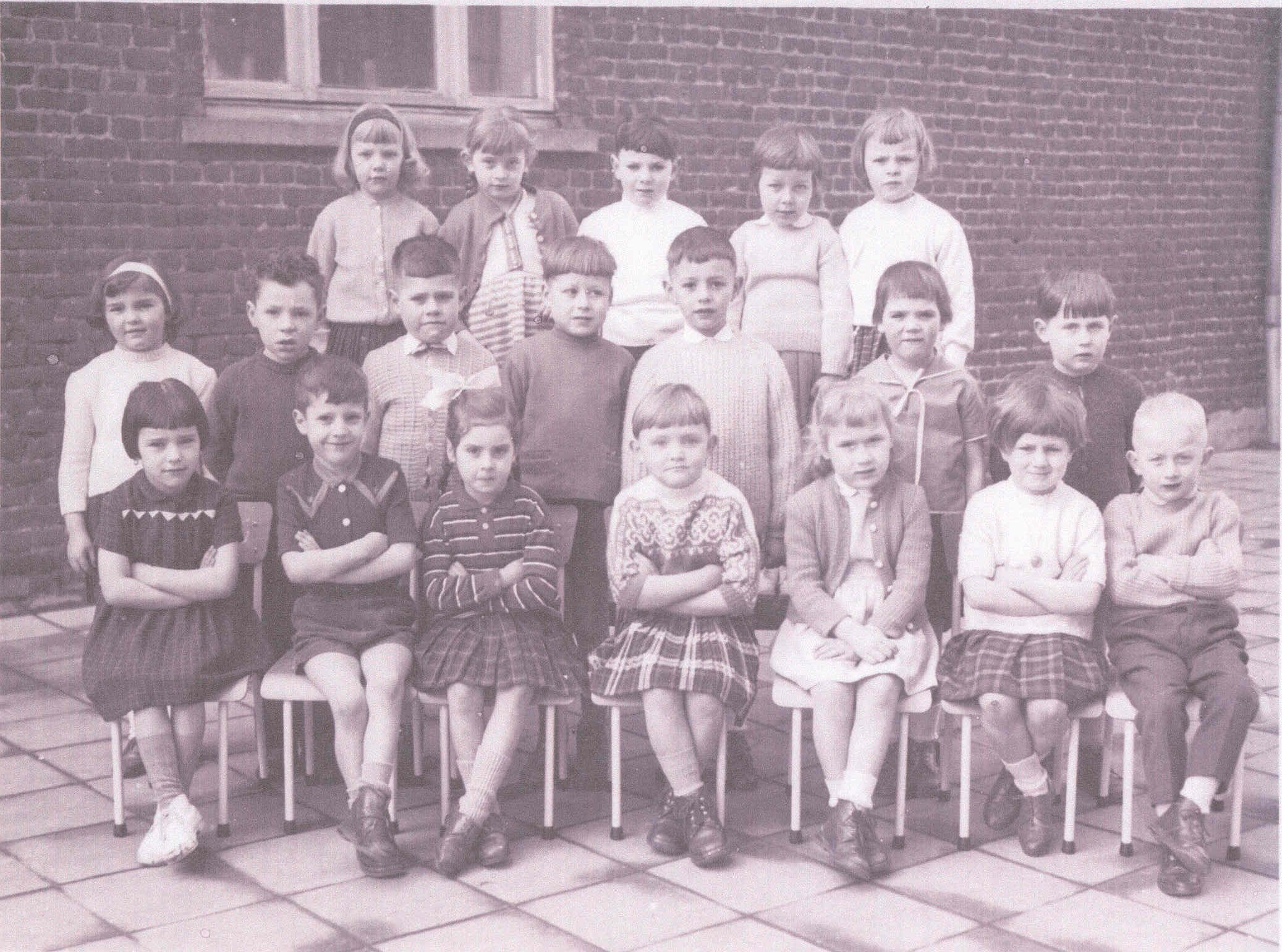 - BeschrijvingKlasfoto 1962 - 1963, klas van zuster Magda - 3de kleuterklas, van links naar rechts: eerste rij: Duerinckx Bernadette, Merckx Peter, Devos Chrisiane, Steenbergen Michèle, Vanschoelant Annemie, Crabbé Jenny, Geeraerts Maurice, tweede rij: Gilis Myriam, Van Ham Willy, Van Cauwenbergh Willy, Vandebroeck Patrick, Taes Eddy, Sellekaerts Gerda, Gilis Ferdy, derde rij: Hermans Maggy, Steenbergen Mimi, Verreck Jean Paul, Wierinckx Isabelle, Oversteyns Liliane