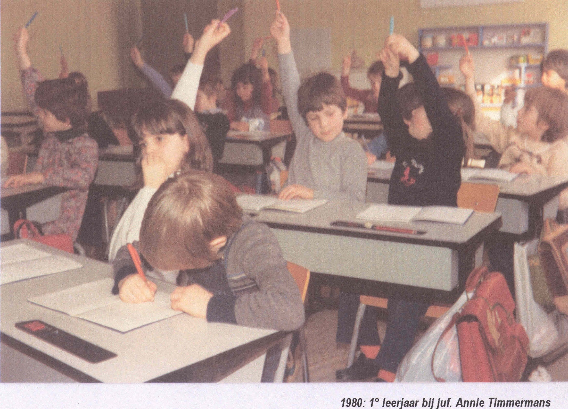- BeschrijvingKlasfoto's 1980: 1ste leerjaar bij juf Annick Timmermans