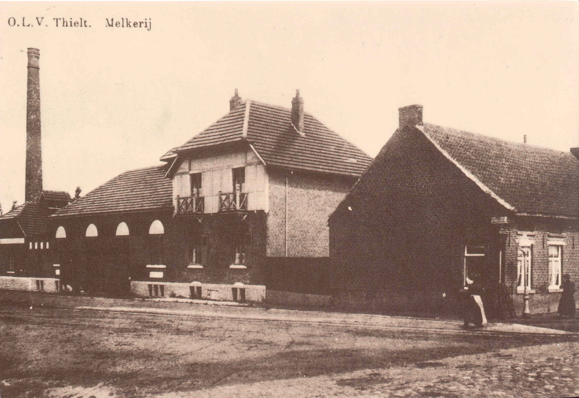 - BeschrijvingFoto Melkerij (voor 1914) gelegen aan de Kruisstraat langs de buurtspoorweg. Rechts herberg en het statiehuis van de wed. Laevers, in de volksmond "Bij Vika"