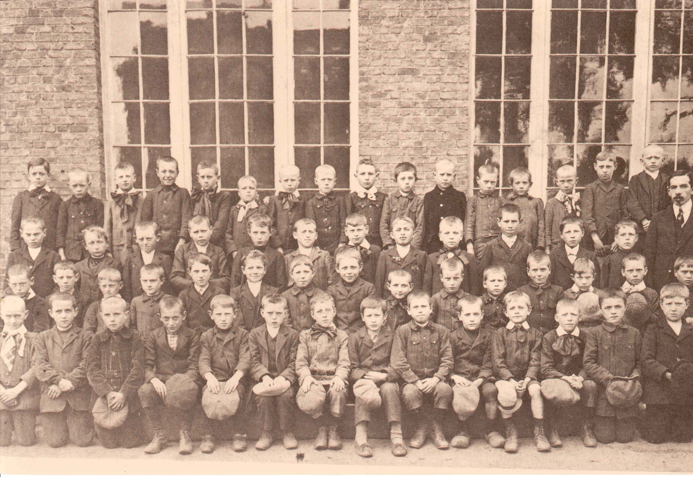 Klasfoto van de gemeentelijke jongensschool van Tielt begin vorige eeuw