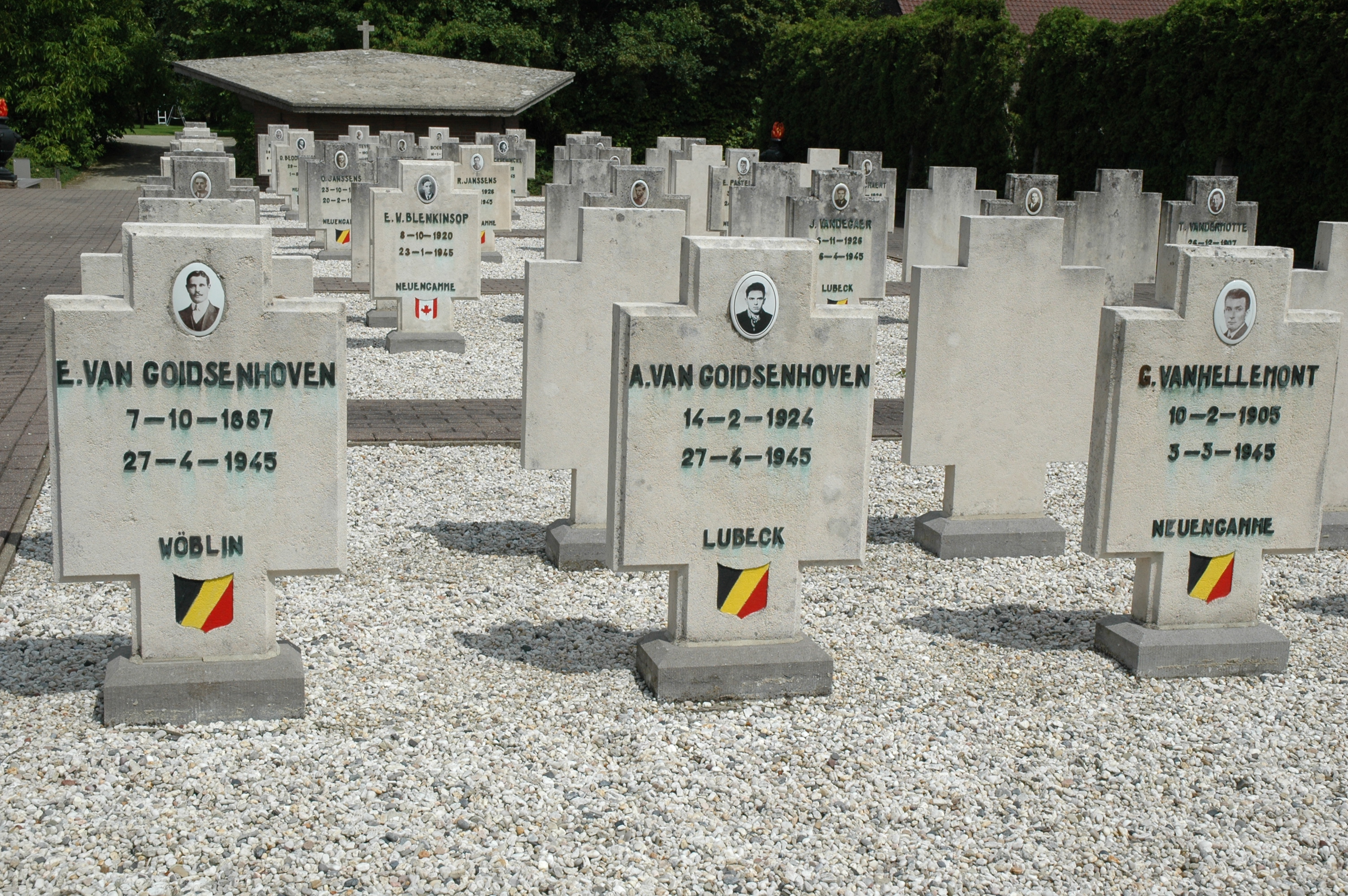 - BeschrijvingMeensen-Kiezegem heeft een zware tol betaald aan de oorlog 1940 - 1945. Er vielen 68 slachtoffers, waarvan er 4 ter plaatse werden vermoord en 64 de concentratiekampen niet overleefden. Dit maakte dat Meensel een negende van zijn bevolking verloor. Ter nagedachtenis werd een ere-kerkhof opgericht met voor elk slachtoffer een zerk.