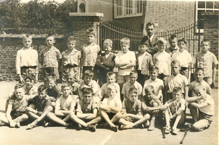- BeschrijvingKlasfoto Jongensschool O.L.Vr. Tielt met derde van links (boven) Denis Coekaerts
