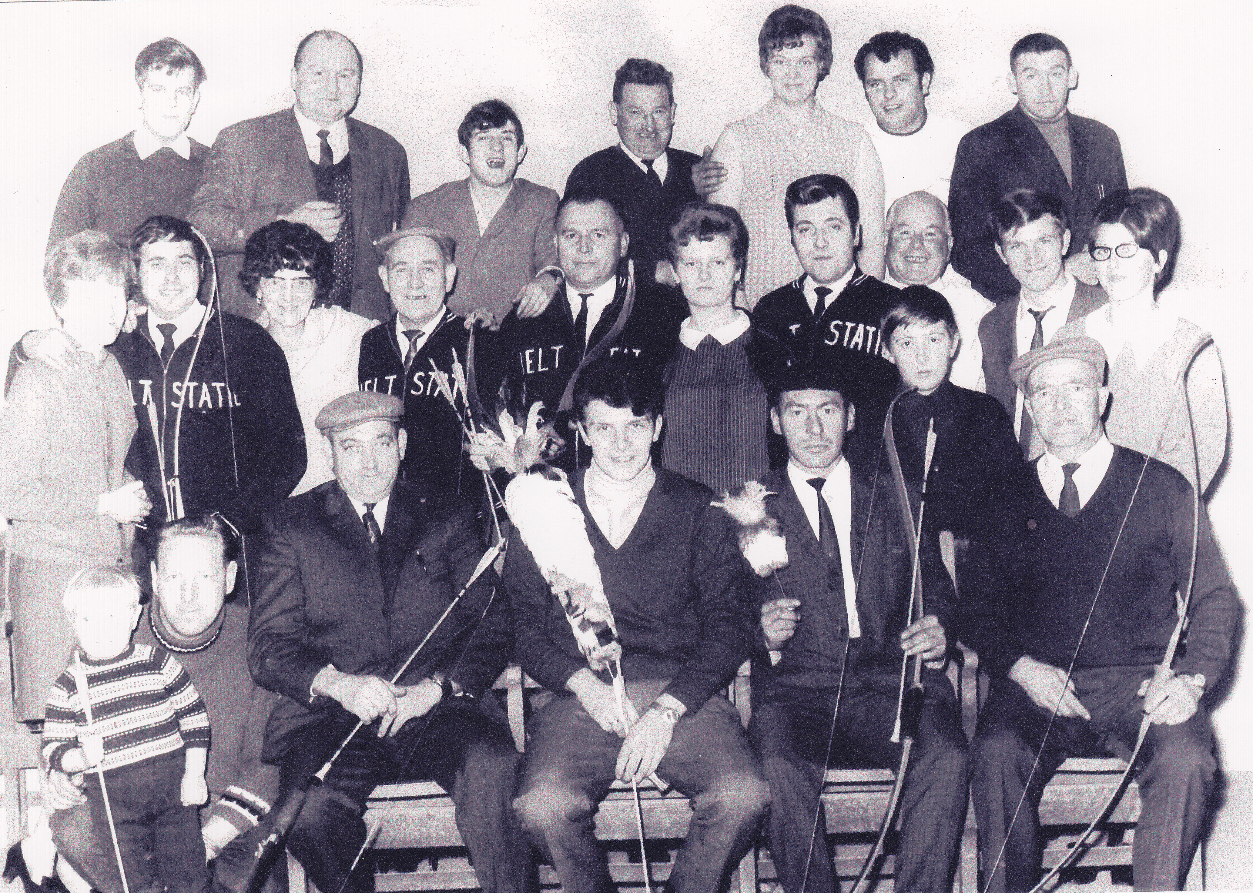 - BeschrijvingKampioenenschieting liggende wip Tielt Statie, bovenste rij: Jean Coekaerts, Louis ?, Robert Coekaerts, Gaston Van Ham, Jeanne Brams, André Baets en Gaston Mellaerts, middenste rij: Adriene Coekaerts, Louis Pittevils, Ida Coekaerts, Edward Coekaerts, Alfons Rasschaert, Louise Everaerts, Karel Puttevils, Edward Collaer (de kantonnier), ?, ?, onderste rij: ?, Gilbert Ons, Frans Coekaerts, André Brams (koning), ?, Alex Clinckx, Alexander Clinckx.