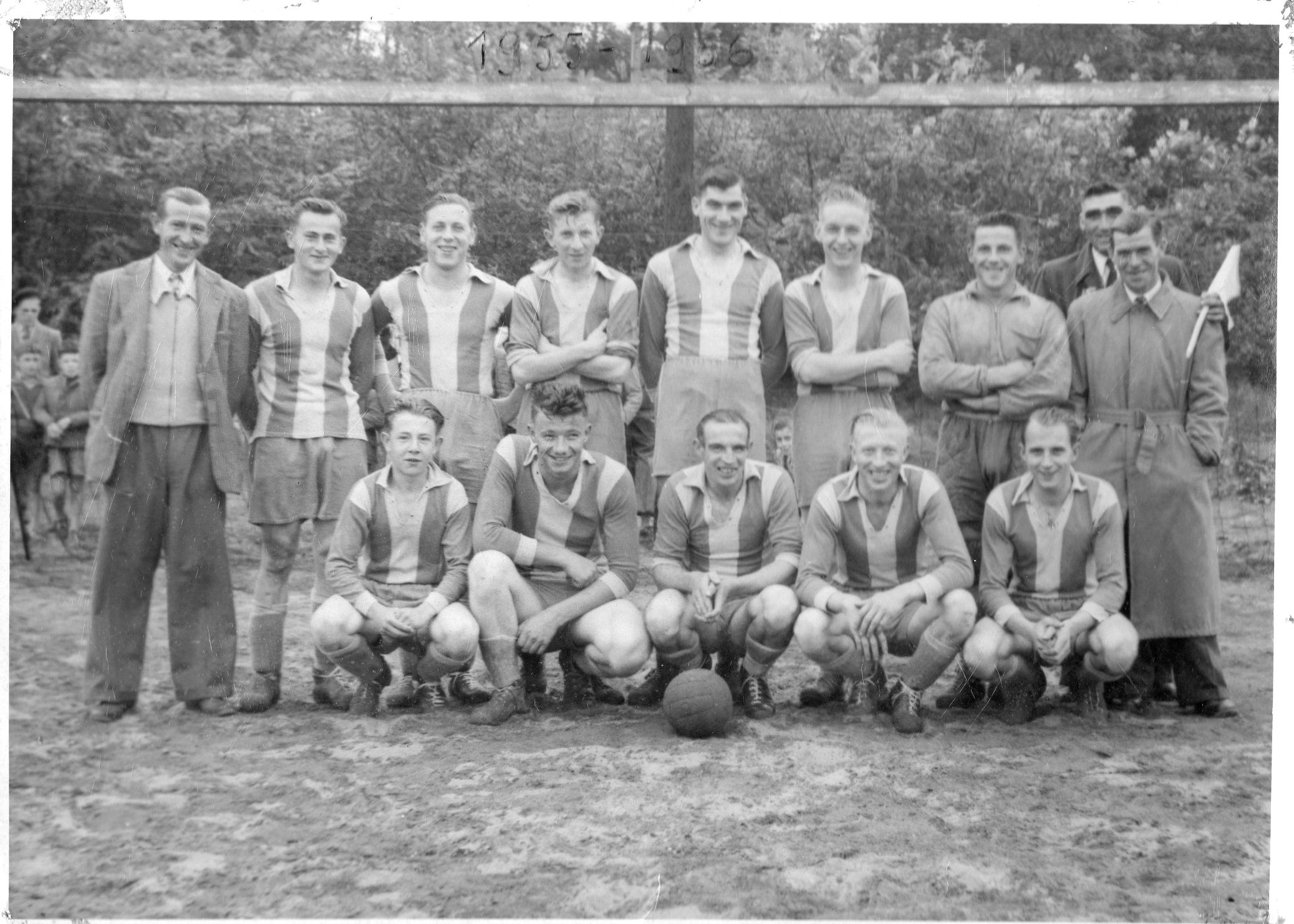 - BeschrijvingTielt Sport Fanionelftal seizoen 1955-1956 Rechtstaand : Jos ?( "van Kets"), Jef Bosmans, Evrard Van Aerschot, Gaston Debrier, Frans Vrancken, Tuur Dankaerts, Remi Van Aerschot, Jules Vrancken, Miel Haesaerts Zittend: Jos Van Aerschot, Julien Vanderhaegen,Triphon Beken ( "den Deen"), Marcel Allaerts, Louis Bosmans.