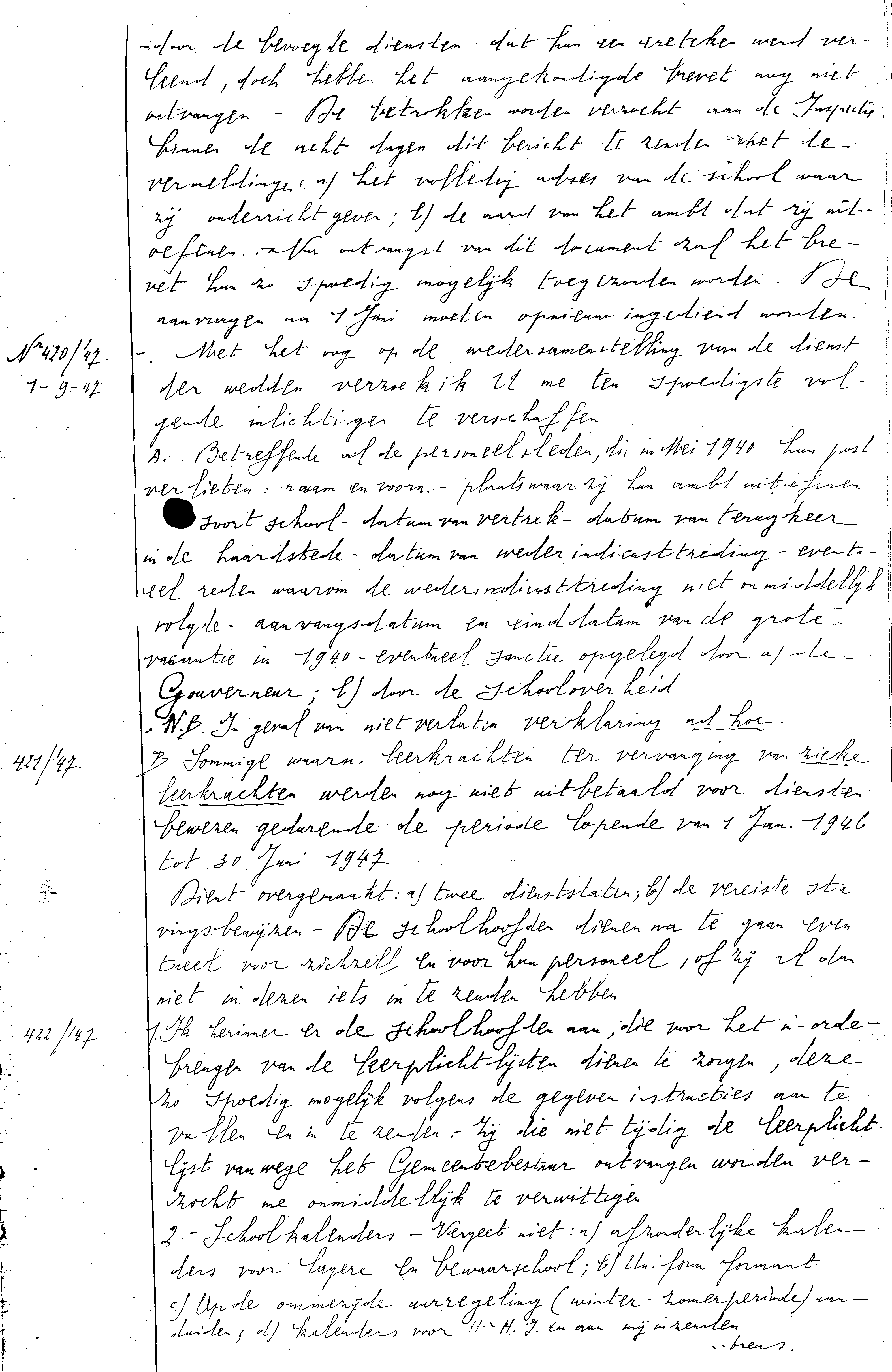 - BeschrijvingRegister briefwisseling: nr. 420/1947 (01/09/1947), nr. 241/1947 en nr. 422/1947