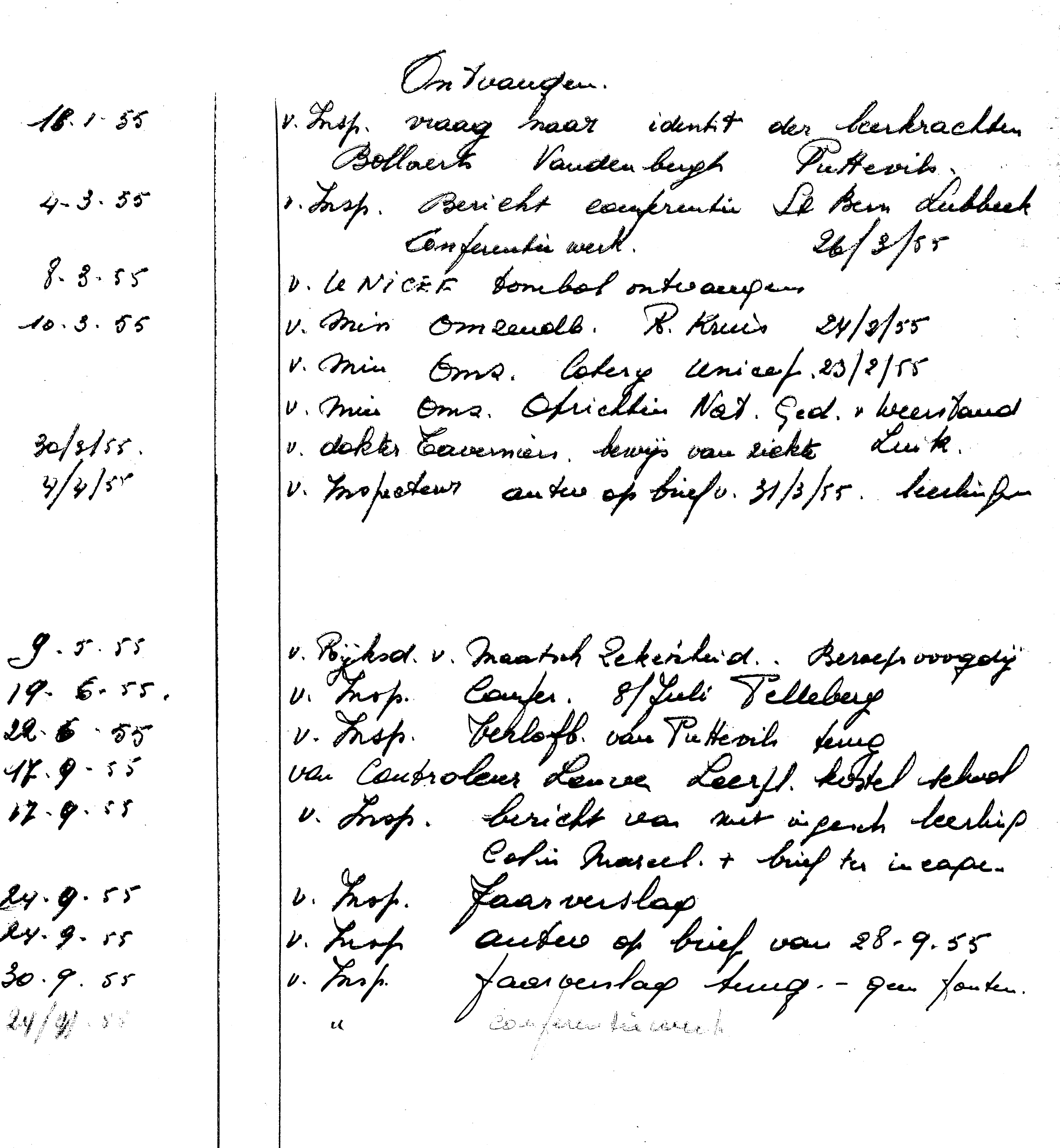 - BeschrijvingRegister briefwisseling: ontvangen vanaf 18/01/1955 tot en met 24/09/1955